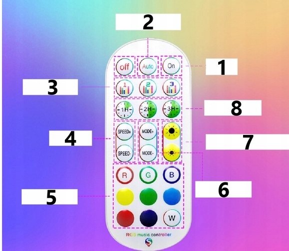 1️⃣Зміна кольорів із палітри RGB, налаштування яскравості, вибір певного готового кольору.